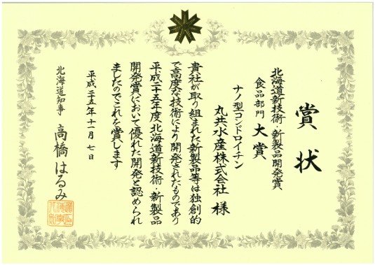 The production method of chondroitin sulfate oligosaccharides by micro-chemical process technology was awarded the Grand Prize for New Products and New Technology Development for its advanced technological achievements.